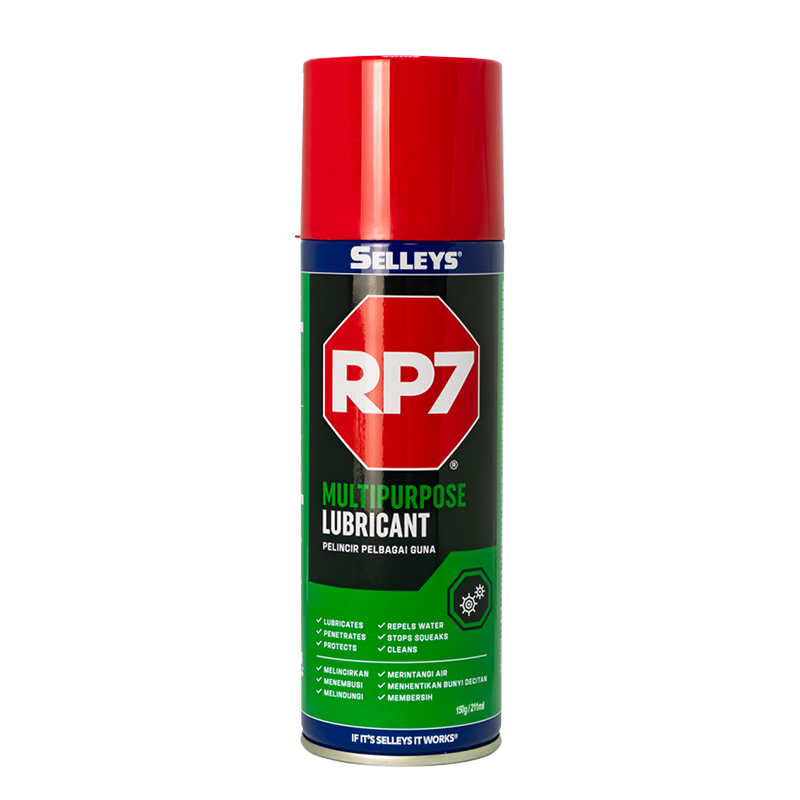 Selleys RP7 is a multi-purpose lubricating and penetrating spray which displaces water and inhibits corrosion.